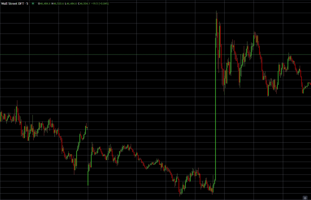 Snapshot of Wall Street DFT (Dow Jones Industrial Average) demonstrating the spike in question