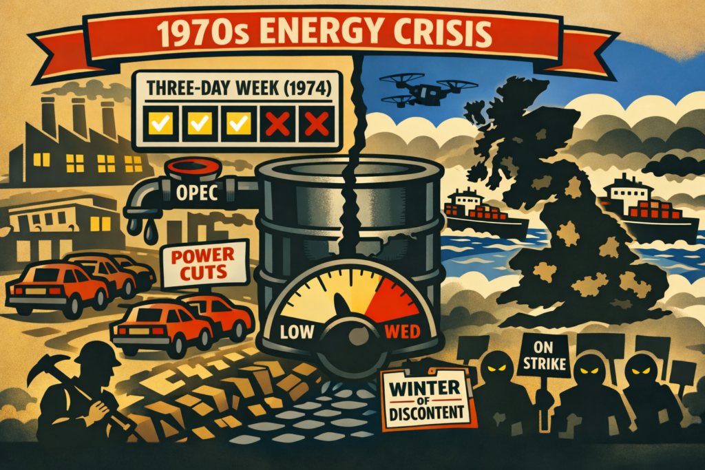 In short, the 1970s energy crisis exposed Britain’s dependence on imported fuel and unstable domestic supply, ushering in years of inflation, industrial unrest, and political upheaval that reshaped the country’s economic direction for decades.